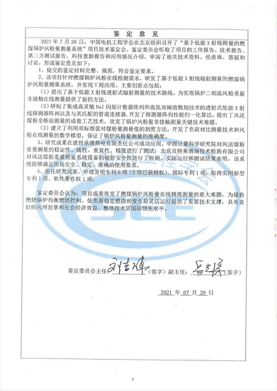 2021年7月20日,中國電機(jī)工程學(xué)會在北京組織召開了“基于低能X射線測量的燃煤鍋爐風(fēng)粉量測量系統(tǒng)”項(xiàng)目技術(shù)鑒定會。